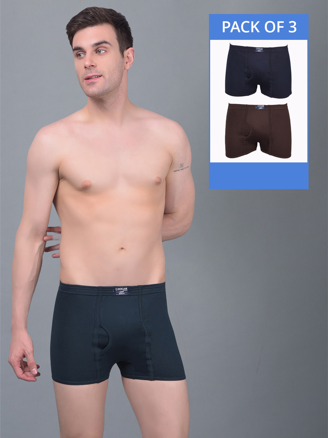 Dollar Lehar Combed Cotton Mens Pack Of 3 Trunk