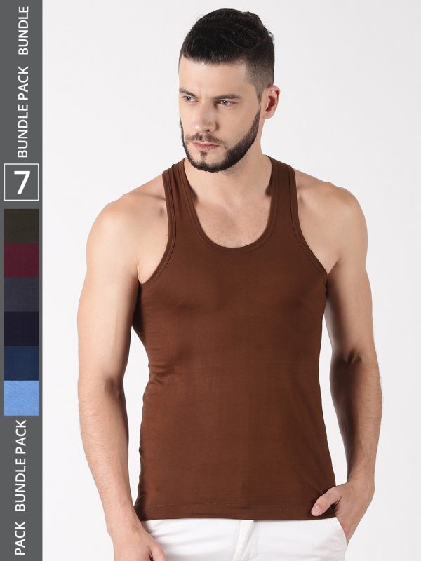 Dollar Lehar Men's Assorted Pack of 7 Combed Cotton Vest