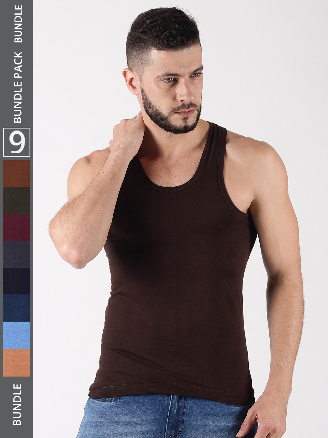 Dollar Lehar Men's Assorted Pack of 9 Combed Cotton Vest