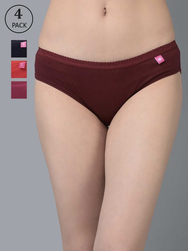 Dollar Missy Pack of 4 Women’s Combed Cotton Solid Outer Elasticated Bikini Panty