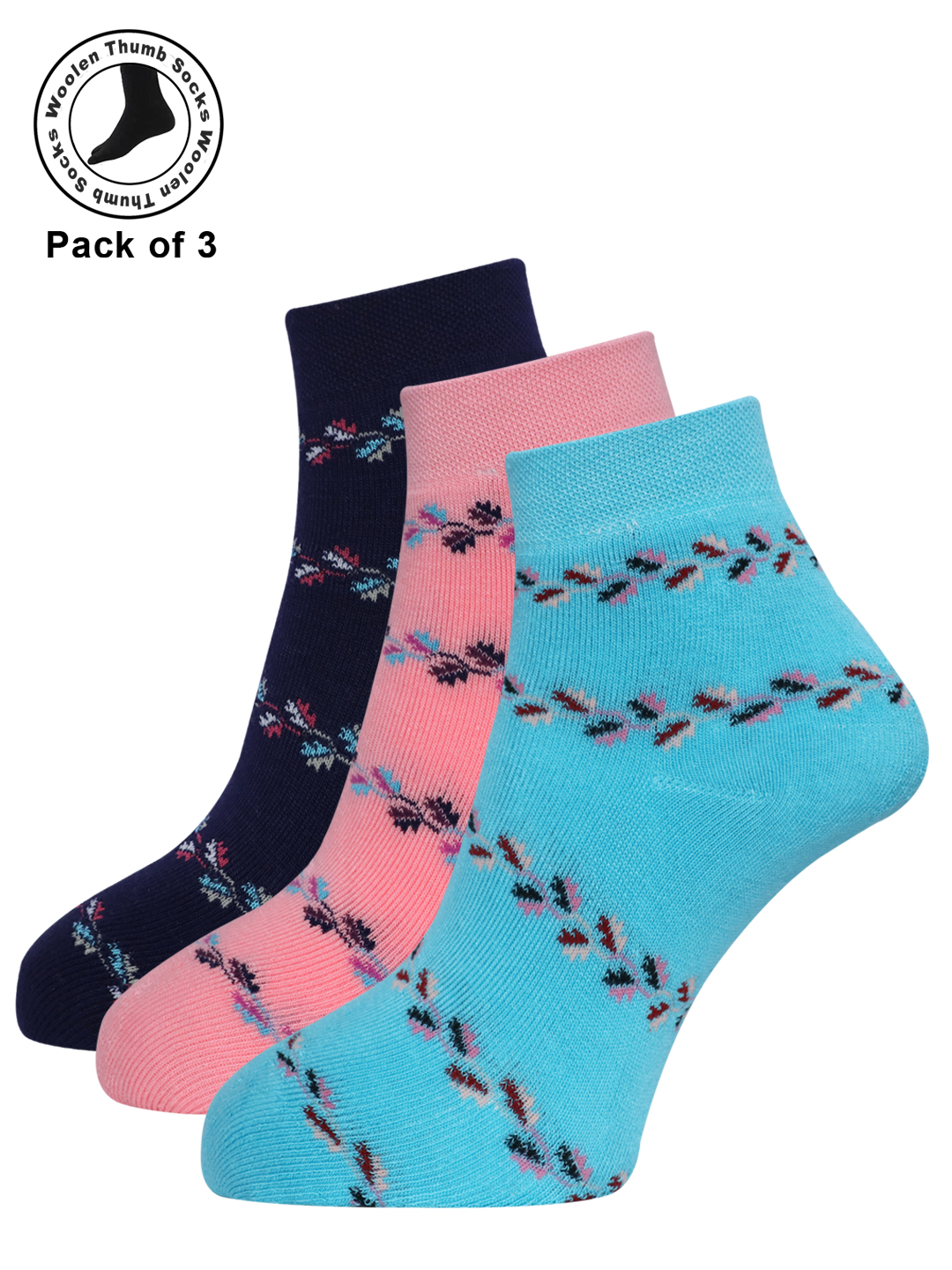 Dollar Woollen Towel Thumb Socks Ankle length For Women's And Girls (Pack of 3)
